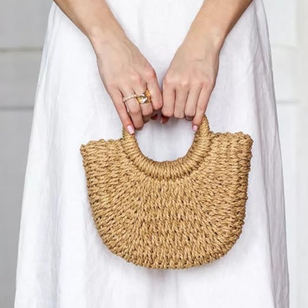 Expertly handwoven from durable straw wicker, this tote features a trendy half-moon silhouette that’s airy, lightweight, and spacious enough to hold all your warm-weather essentials. Whether you’re heading to the beach, brunching with friends, or strolling through a summer market, this boho bag pairs effortlessly with flowy dresses, casual outfits, or resort wear.