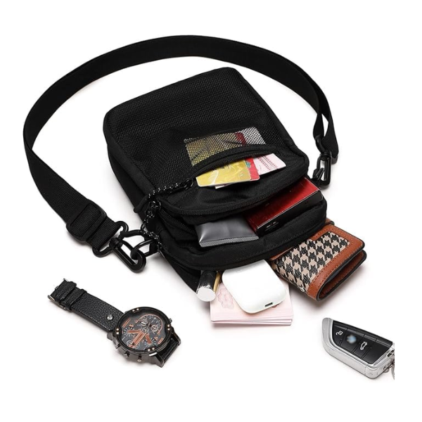 Compact, water-resistant mini messenger bag for men and women — perfect crossbody or side shoulder bag for phone, passport, and travel essentials.