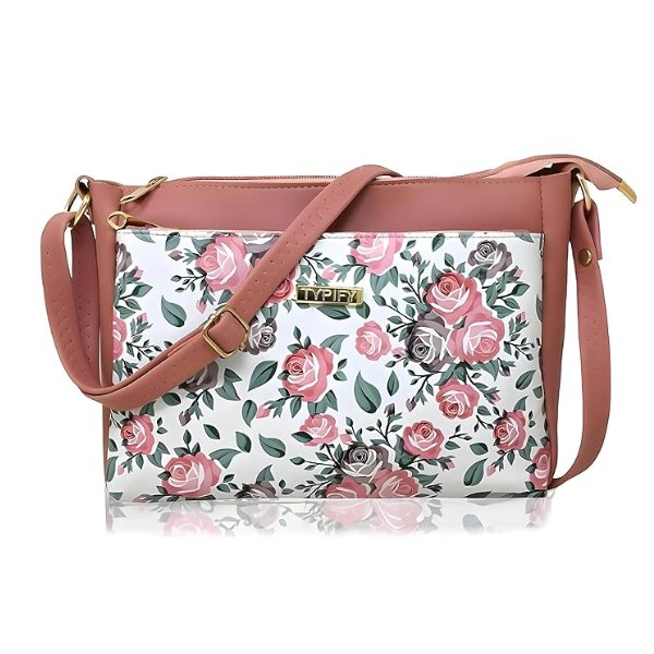 Add a pop of color and charm to your look with the TYPIFY Stylish Women’s Sling Bag featuring a vibrant floral print in a cheerful pink tone. Designed for fashion-forward women, this crossbody purse perfectly balances everyday elegance with practical functionality.Crafted from quality materials, the bag is lightweight, durable, and comes with an adjustable strap for comfortable hands-free use. The spacious main compartment with secure zip closure easily accommodates your phone, wallet, keys, makeup, and other small essentials—making it ideal for daily errands, college, brunch dates, shopping, or travel.Compact yet statement-making, this sling bag adds flair to both ethnic and western outfits. A thoughtful and stylish gift choice for daughters, friends, or sisters, suitable for all seasons and occasions