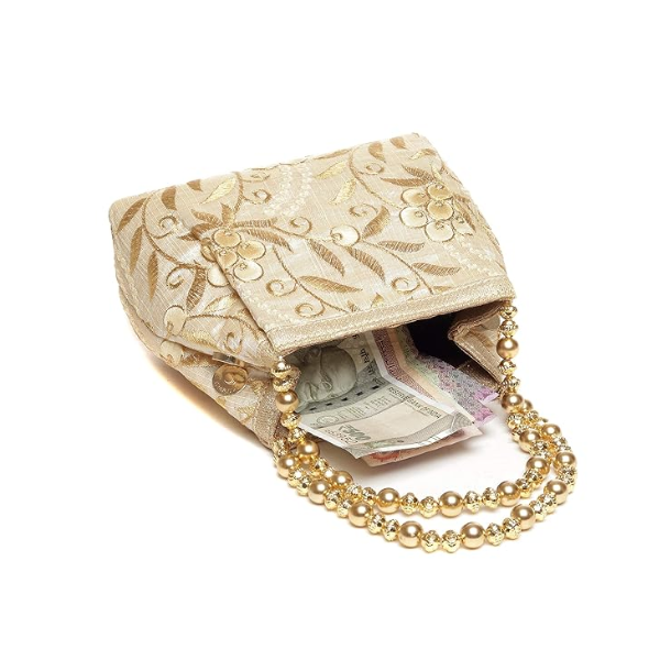 Perfect for weddings, engagements, poojas, and festive parties, this potli is roomy enough to hold small essentials like cash, cards, keys, or a compact lipstick. It also makes a thoughtful gift for bridesmaids or as a shagun pouch for special occasions.